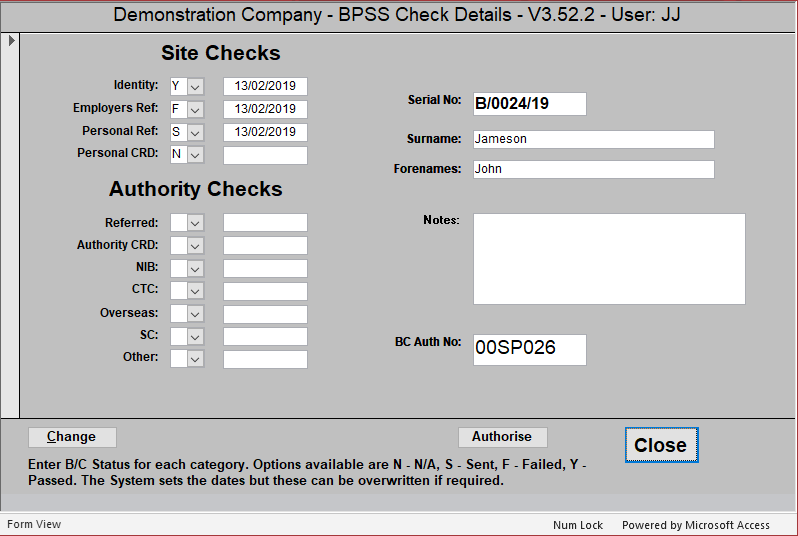 Once all valid Basic Checks have been done you are ready to Authorise the BPSS.