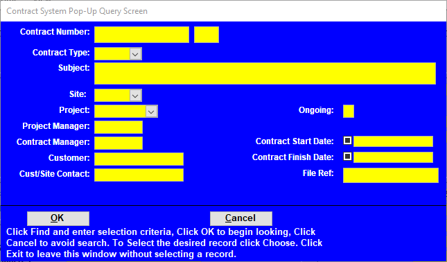 This screen open up when the user double-clicks in a Contract Number reference box.