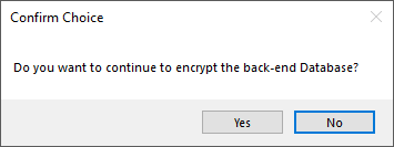 If you answer Yes, the system will check if any other users are logged in to WiSeMan. If they are, a warning message is displayed and no action will take place. If there are no users in WiSeMan, the back-end will be either encrypted or decrypted.