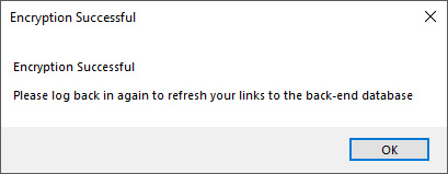 When you next run WiSeMan, there will be a short pause whilst the front-end reattaches itself to the newly encrypted / decrypted back-end database.