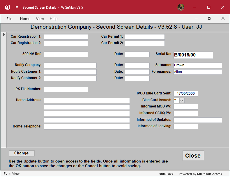 Allows access to the second screen of Personnel information. This option is also available in Find mode allowing queries to be made on information stored on the second screen.