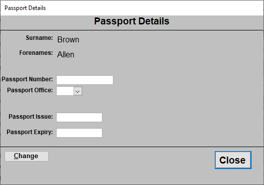 Allows the entry of Passport information for the individual. If the IVCO module is installed, information entered here will be transferred to the Blue Card for the individual when appropriate.