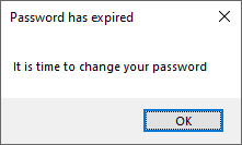 If you have kept the same password for longer than the period allowed by the System Manager, this pop-up window will be displayed: